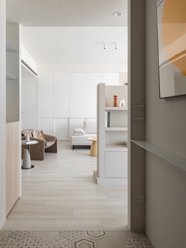 此外,大坪數住宅最常被忽略的「採光」與「動線」也在本案獲得重塑。透過開放式設計與格局調度,日光可自客廳延伸至走廊及書房區域,提升居住舒適度。寬敞卻不空洞、機能而不壓迫,是此次改造的核心成果。
