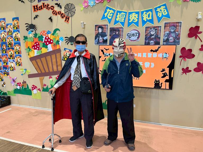 萬聖節不只是孩子的節日!花壇秀和苑日照中心27日舉辦《鬼滅親子祭:無限年齡城》,邀請鄰近貝威幼兒園小朋友共襄盛舉,讓長輩與孩子在音樂與笑聲中共度熱鬧又溫馨的跨世代萬聖節。