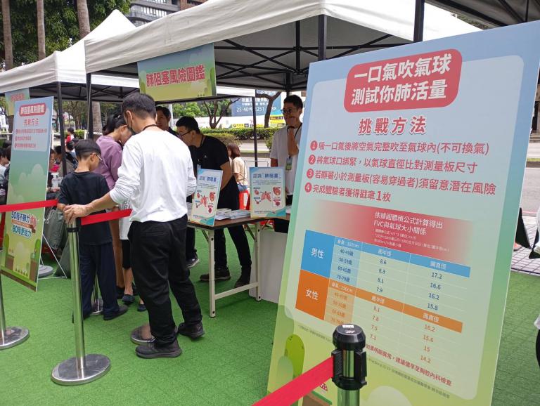 ▲活動現場設置攤位,讓民眾可以初步測試自己的肺部健康。(圖╱記者孔亮云翻攝)