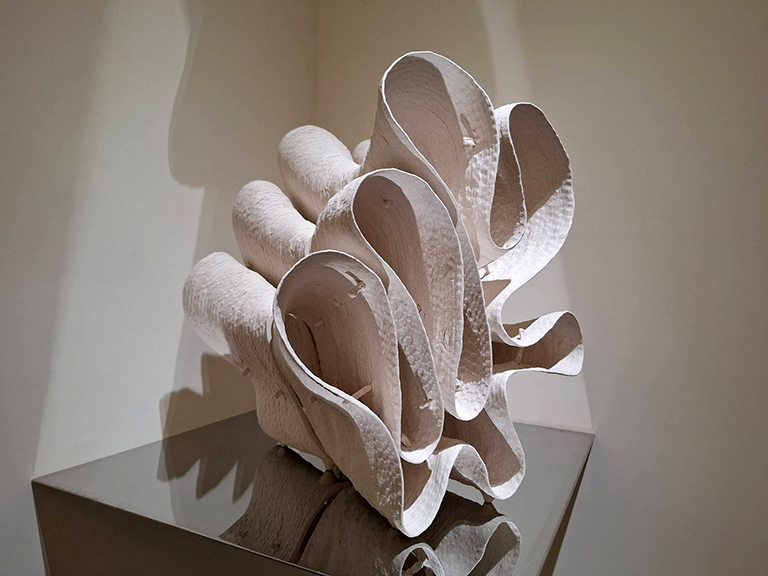 ▲徐永旭僅憑雙手推疊、塑形極大極薄的陶作品。
