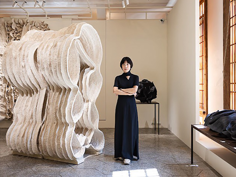 43歲那年,徐永旭毅然決定全職創作,將生命完全交付給藝術。自此,他以信仰般的堅定投入創作,不倚賴任何機械輔助,僅憑雙手推疊、塑形極大極薄的陶作品,讓作品在時間的淬鍊中孕育出厚度與靜光。