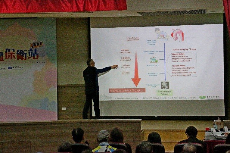 ▲鄭伊佐醫師說明,若長期忽視壓力與血壓波動,容易引發主動脈剝離等急重症,若未及時手術,24小時內死亡率高達五成。(圖╱台中慈濟醫院提供)