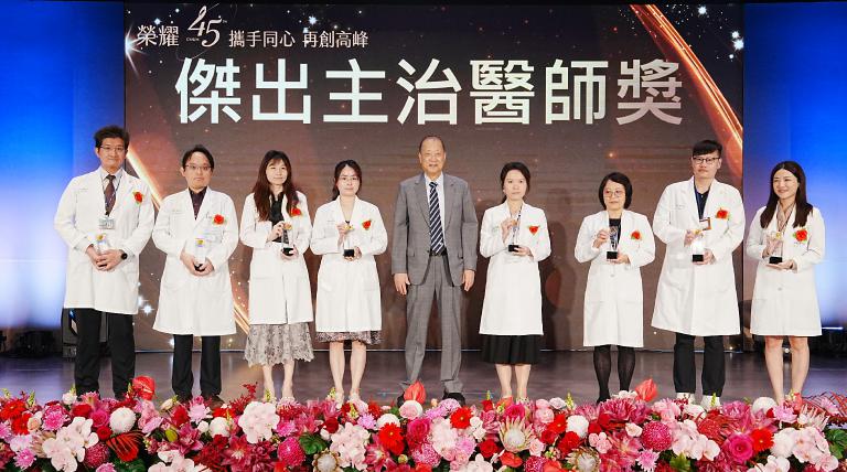 ▲中醫大暨醫療體系蔡長海董事長(右五)頒發113年傑出主治醫師獎,肯定主治醫師卓越醫療表現與專業貢獻。(圖/中醫大附醫提供)