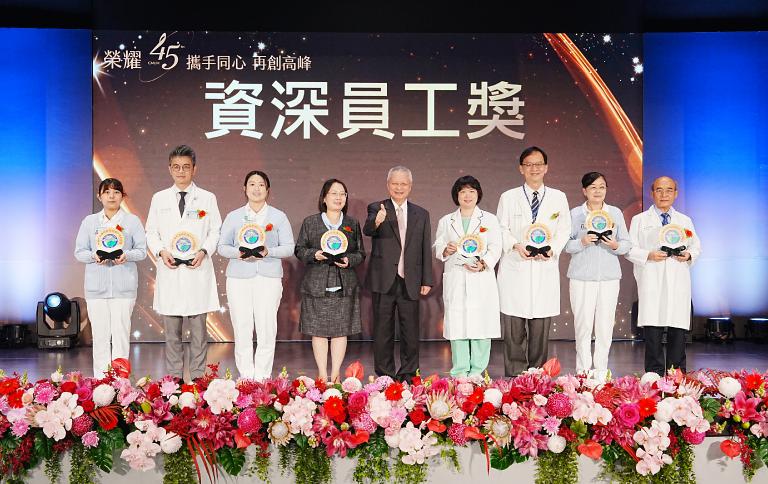 今年院慶同步頒發多項榮譽,包括表揚在臨床照護、教學研究等領域表現卓越的50位傑出醫師,以及636位資深員工,並向長年投入院內服務的志工及企業志工隊致敬。本院於2016年成立全台首家由醫療院所立案的企業志工隊,在周德陽院長及行政副院長暨企業志工隊隊長楊麗慧帶領下,長期投入偏鄉照護、環境永續與弱勢關懷,他們的無私奉獻,屢獲大獎肯定,包括「台灣永續行動獎」金獎殊榮!