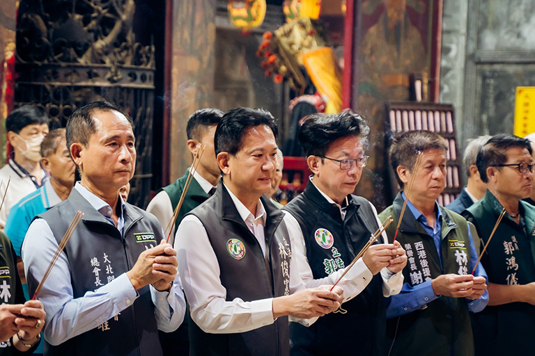 ▲林俊憲在天上聖母面前許下承諾,讓西港恢復往日繁榮。