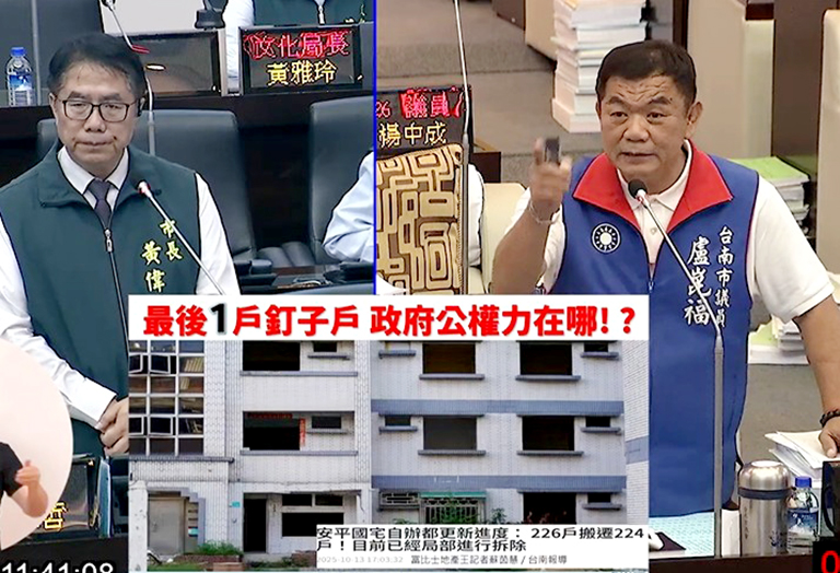 台南市安平二期國宅海砂屋都更重建案,市府今年1月初核定權利變換計畫並發布實施,都發局原訂4月完成226戶搬遷、展開重建。盧崑福表示,截至目前為止卻仍有1戶釘子戶不願搬遷,重建案無法動工,許多住戶擔心,租金補貼只有30個月,現已浪費8個月。負責重建案的中國建築經理公司不僅未在台南設立辦公室,又不認真出面協調?市府都發局未依《建築法》第81條規定危害建物得強制拆除,政府公權力在哪?可見市府明顯是幫兇。