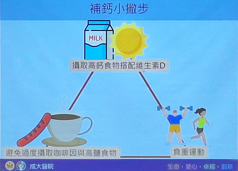 ▲適度日曬和維生素D攝取,可增加鈣質吸收;進行負重運動,有助將攝取的鈣質有效存入骨骼中;避免過量咖啡因、酒精與高鹽飲食。(圖/記者吳玉惠拍攝)