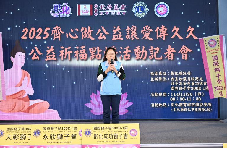 「2025齊心做公益、讓愛傳久久」祈福點燈活動將於11月30日在彰化體育館登場,由國際獅子會300D1區、北斗奠安慈善功德會及縣議員白玉如服務處共同主辦,邀請民眾參與點燈行動為家人、社會祈福,凝聚更多公益力量。21日舉辦宣傳記者會,彰化縣政府參議柯呈枋代表王惠美縣長出席,感謝3個單位長期投入公益,共同推動具有意義的點燈活動。縣府將持續與民間協力,強化在地照顧,讓「美好彰化 希望城市」落實在縣民的生活日常。