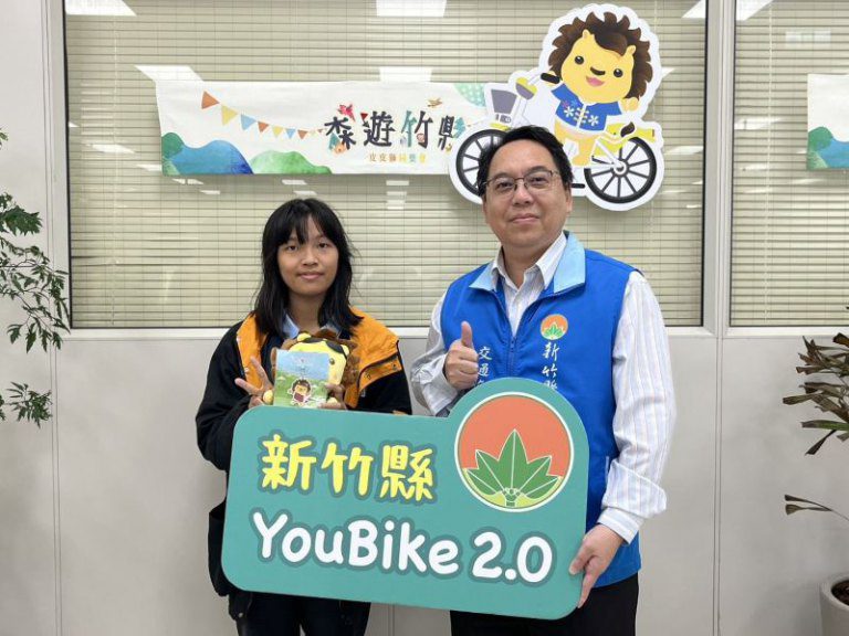 新竹縣公共自行車(YouBike)使用量再突破,縣政府宣布公共自行車累計騎乘量截至11 月 11 日突破 500 萬人次,寫下營運以來重要里程碑,展現縣民對低碳運具高度支持,由新竹縣公共自行車營運團隊(微笑單車)舉辦「尋找竹縣第 500 萬人次幸運兒」活動,包含前、後各2位使用者(第4,999,998至第5,000,002人),其中2位幸運得主在11月21日於交通旅遊處現身領獎,這次除原有活動提供精美好禮外,交旅處長陳盈州也加碼竹縣最新款觀光大使「皮皮獅」玩偶及「皮皮獅悠遊卡」各1 組,讓現場民眾驚喜連連又溫馨。