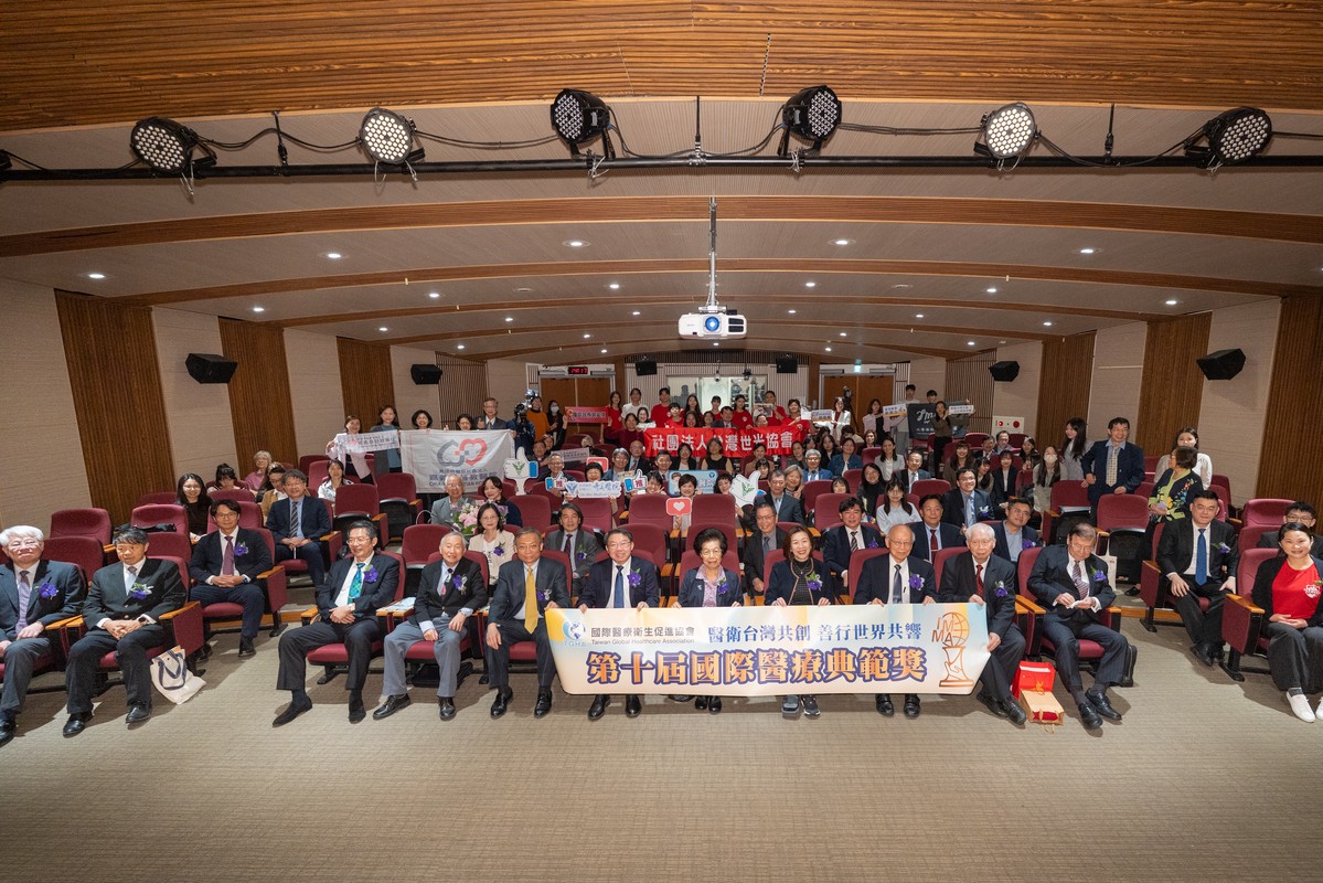 第十屆國際醫療典範獎與會長官貴賓、得獎者及親友團等超過百位與會者蒞臨衛福部頒獎典禮現場參與盛會(圖片由國際醫療衛生促進協會提供)