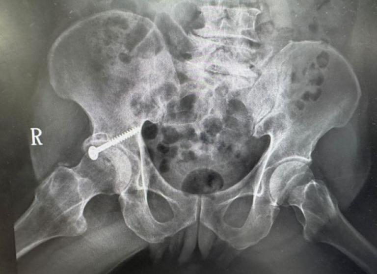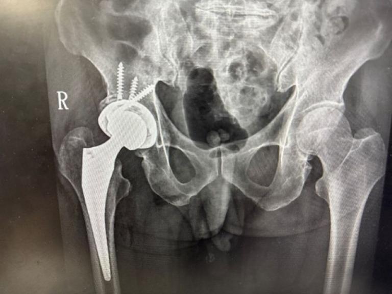 一名76歲老翁多年前因髖臼骨折接受手術,術後留下垂足與步態異常,造成長期行動不便,導致外傷性退化性髖關節炎,連上廁所與行走都成為挑戰,經新竹臺大分院骨科團隊詳細評估並與病人充分溝通後,決定採用「