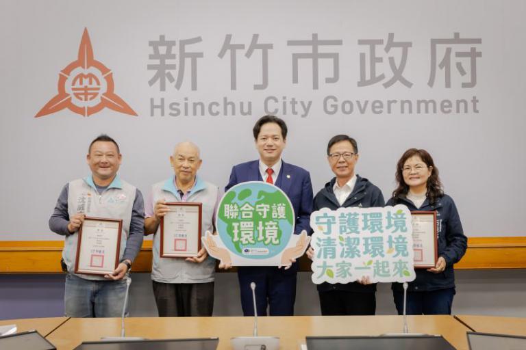 新竹市政府今(2)日公開表揚「114年新竹市環境清潔競賽」中表現卓越的18個績優里,代理市長邱臣遠感謝各里長及志工攜手打造乾淨的環境,落實淨零綠生活。