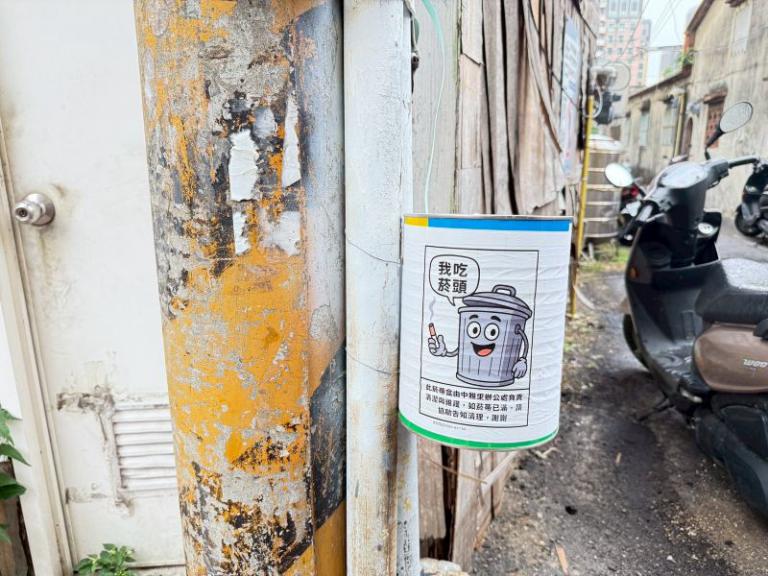 ▲特優獎中雅里推動菸蒂不落地設置菸蒂桶。(圖/記者蔣彤雲攝)