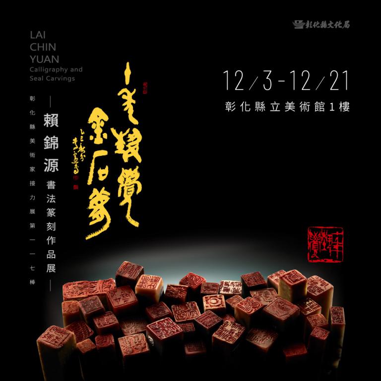 彰化縣立美術館自即日起至12月21日推出彰化縣美術家接力展第117棒—「十年藝覺金石夢」賴錦源書法篆刻作品展,邀請到篆刻家賴錦源老師,以十年心血帶領觀眾走入書法、篆刻的創作世界。今(3)日舉行開幕式,縣長王惠美、賴錦源老師及多位藝術愛好者一同揭開展覽序幕,會中由賴錦源老師捐贈書法作品〈八卦山大佛〉予彰化縣政府,文化局將列為典藏,未來作為展覽及教育推廣之用,感謝老師回饋家鄉。王縣長表示,這次展覽展出賴錦源老師超過400件作品,包括書法70件、玉石篆刻300方、陶雕20件、銅或銀印等作品10件,是賴老師十年心血的完整呈現,展現他多方發展的才華。