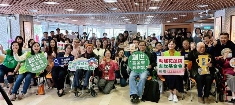 ▲(index pointing right)創世致贈6位長庚養生村人瑞長者義工手作毛帽。(圖╱創世基金會提供)