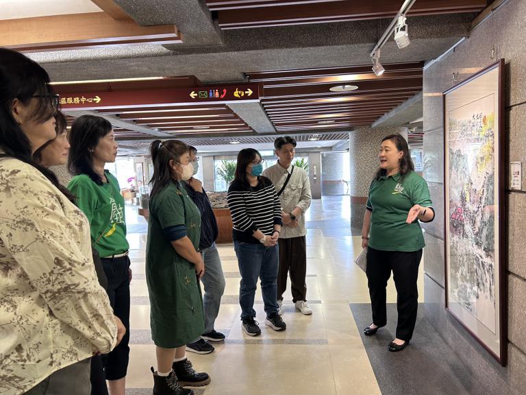 ▲創世工作人員進行畫作導覽。( 創世基金會提供)
