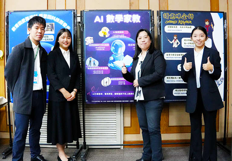 南大六組師生團隊現場分享年度重點成果,展現南大從基礎教學到社會實踐的多元面向。教育學院吳純萍副教授以「AI數學診斷家教機器人」點亮孩子的思考,語意煉金師點亮教師的未來,並持續走進3701小時的真實教室,用科技與陪伴縮短教育落差,讓每一個孩子都有被看見、被成全的機會,打造永續教育新模式。