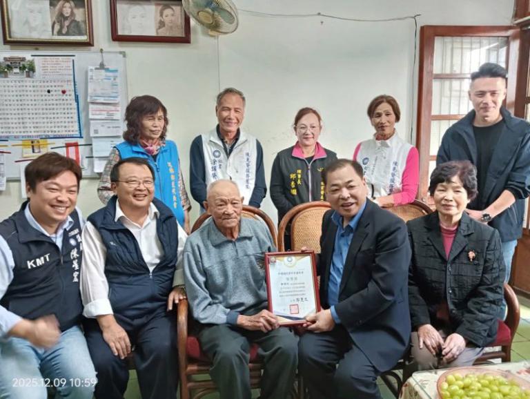 國民黨新竹縣黨部今(9)日前往芎林鄉舉辦晉齡黨員表揚活動,縣黨部主委陳見賢親自頒發獎狀向黨齡高達 70 年的芎林鄉鄭煥松老師致敬,陳見賢表示,國民黨以「民有、民治、民享」為核心精神,縣黨部將持續與黨中央緊密合作,推動各項黨務革新,讓基層聲音能夠真正傳遞到政策端。