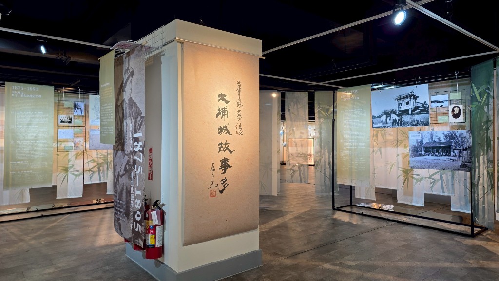 展覽主視覺以「穿越式視覺通道」概念呈現,將不同年代影像層層堆疊,引導觀眾走入歷史長廊,中央以蒼勁書法呈現的「篳路藍縷大埔城故事多」文字,象徵先民翻山越嶺開拓的艱辛過程,更喚起人們對家鄉生命力與不屈精神的感受。