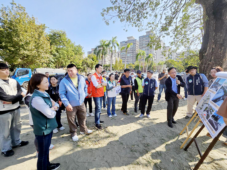 ▲「東區商四商業設施促參案」暨「臺南市運動藝文休閒園區BOT案」進度與周邊整體交通規劃,及機35市地重劃實地會勘。