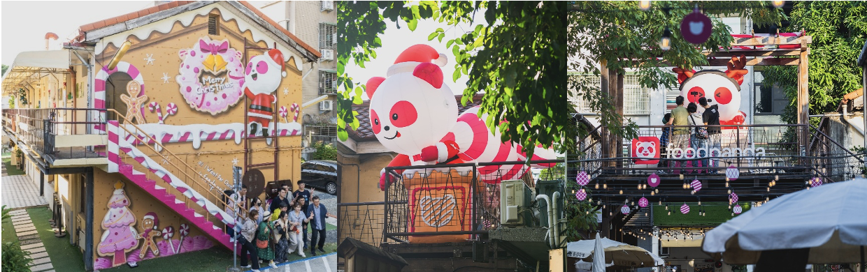 foodpanda本次更投入完整創意規劃與視覺設計能量,將品牌形象轉化為可親近、可拍照、可體驗的節慶場景,打造一處結合城市風景與節慶想像的代表作。同時,審計新村也將節慶佈置延伸至整個園區,讓藝術自然融入日常空間之中,旅客可自在漫遊,在散步之間體驗節慶與生活交融的旅遊風景,也讓審計新村成為今年冬天台中不可錯過的走逛地標之一。