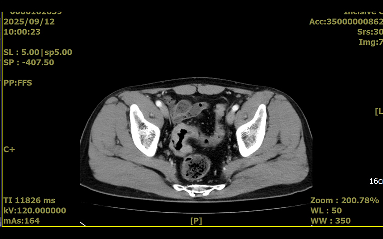 50歲男性因健康檢查發現糞便潛血反應呈現陽性,進一步至衛福部臺南醫院接受大腸鏡檢查而發現大腸癌,隨即在院接受手術治療,由外科主任許凱熙醫師為其進行Hugo機器人輔助微創手術,術後恢復迅速良好,很快即重回工作崗位及正常生活。
