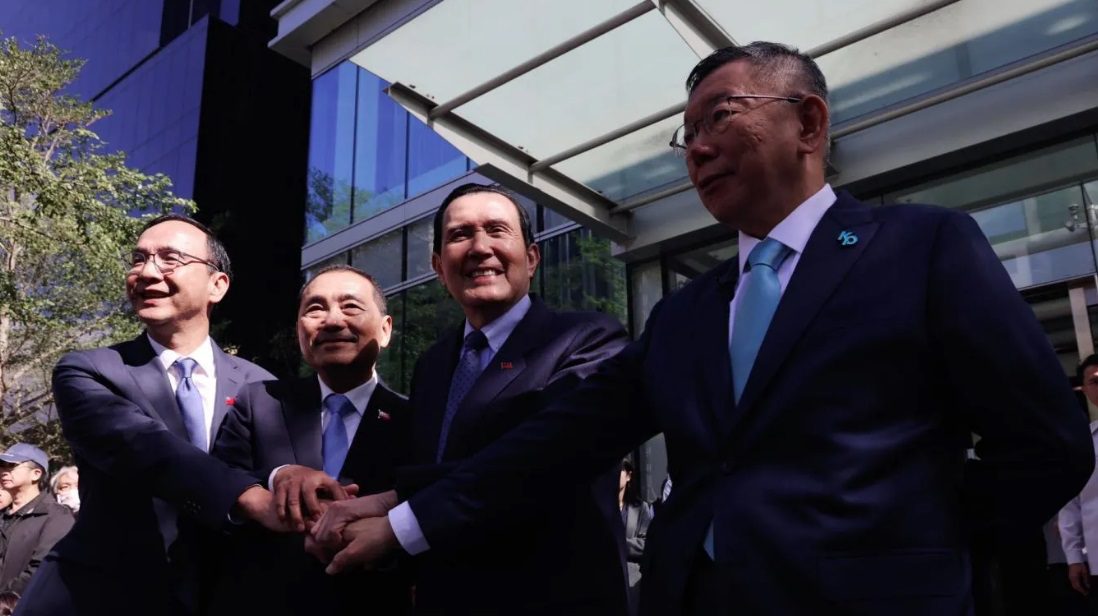 國民黨主席朱立倫、總統候選人侯友宜、台灣民眾黨主席暨該黨總統候選人柯文哲今(15)日於馬英九基金會召開國民黨民眾黨政黨協商會議,在前總統馬英九見證下,達成六點共識。