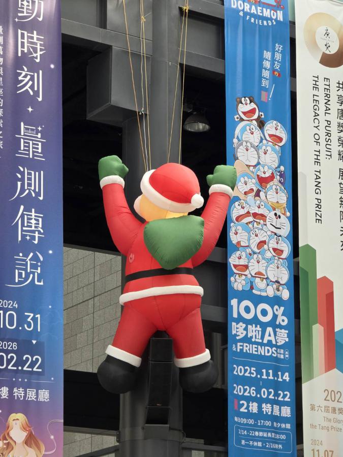 今年1F大廳以大型拱形TRUSS聖誕主視覺為核心,結合柱子上的聖誕老公公高掛迎賓,搭配雪花全息投影裝置,隨光影流轉閃耀空間,成為民眾爭相拍照的熱門打卡點。現場更設置Yogibo懶骨頭休憩區,柔軟多樣的造型座椅,讓親子家庭在參觀之餘,能自在坐臥、伸展放鬆,享受片刻悠閒時光。不少學校團體也特地安排學生到館參訪,在聖誕布置前留下歡樂合影。