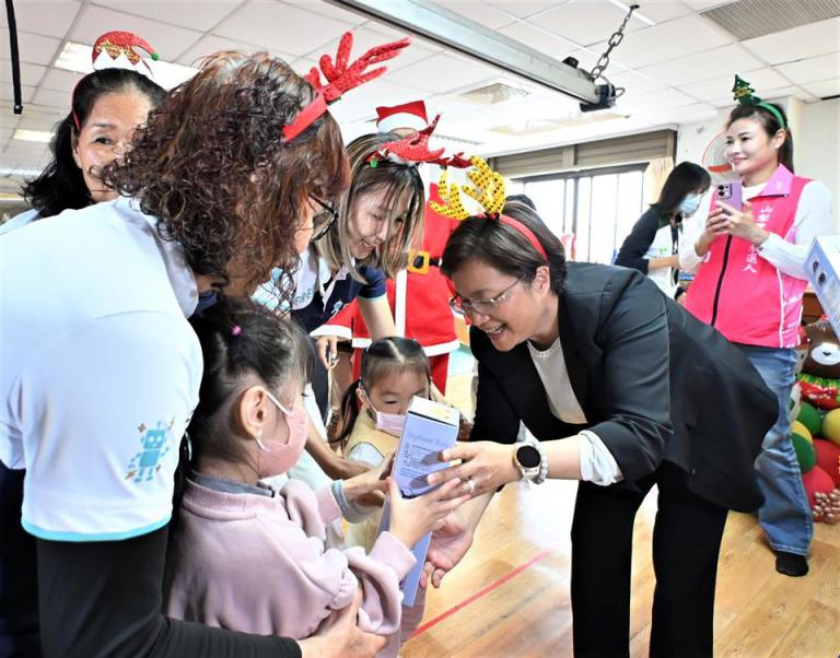 轉眼間即將來到聖誕佳節,家扶基金會彰化發展學園18日舉辦「相信有愛,就有奇蹟—慢飛天使圓夢活動」,縣長王惠美、和美鎮長林庚壬、和仁國小校長胡素慈、和仁國小家長會輔導會長陳采蘋、志工隊長吳雪菁及志工伙伴來到學園親手將聖誕禮物送到每位慢飛天使手上,並捐贈早療服務經費,現場氣氛熱鬧溫馨。