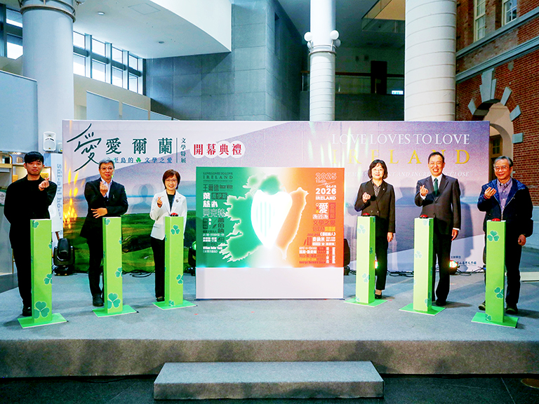 國立臺灣文學館今(19)日舉辦年度國際大展「愛・愛爾蘭-島至島的文學之愛」文學特展開幕式,展出包含借自蘇黎世喬伊斯基金會的珍貴文物及愛爾蘭國家圖書館、紐約公共圖書館授權複製的多項精彩的手稿、劇照等。文化部常務次長徐宜君、國立臺灣文學館館長陳瑩芳、前駐愛爾蘭大使楊子葆、臺灣愛爾蘭研究學會理事長謝志賢、實踐大學應用外語系副教授謝文珊、中山大學外文系副教授賴怡芃、作家鄭順聰、曹馭博、李勤岸、《都柏林人》台語版譯者劉盈成等共同啟動展覽。