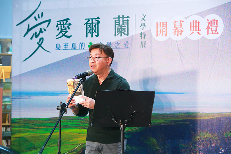 ▲學術策展人謝志賢教授致詞分享愛爾蘭文學的深刻內涵。