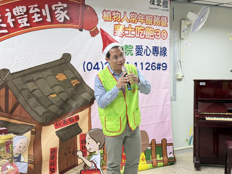 ▲創世台中院陳韋龍院長表示,植物人家屬因長期照護面臨沉重的經濟壓力,邀請大眾支持創世「第36屆寒士吃飽30-送禮到家」活動,在農曆年前將祝福年禮與紅包親送到植物人與弱勢家庭手中,讓他們感受社會的關懷與溫暖。(圖╱創世基金會提供)