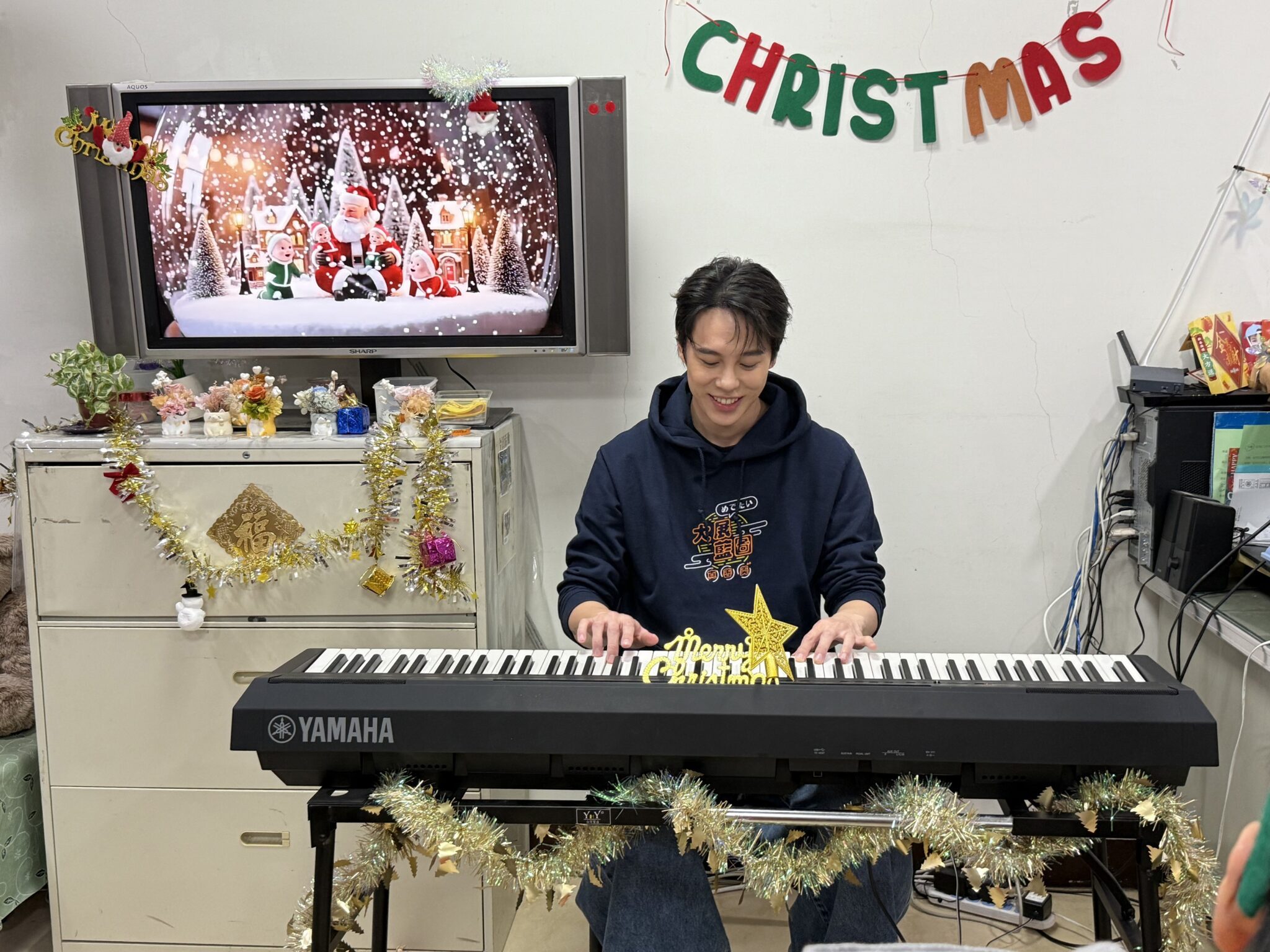 最帥DJ歌手 MAI 孫麥傑聖誕前夕探訪真善美社會福利基金會現場彈奏鋼琴用音樂陪伴憨兒過節 照片提供:真善美社會福利基金會