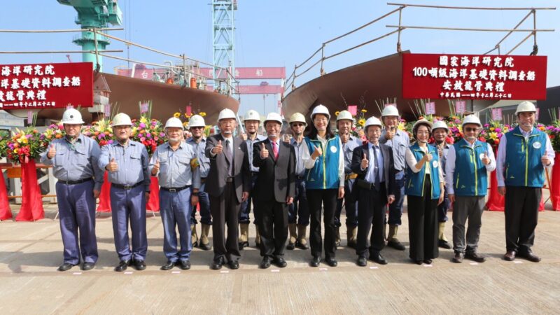 台灣國際造船股份有限公司(以下簡稱:台船公司,股號2208)承造海洋委員會國家海洋研究院100噸級與300噸級海洋基礎資料調查船各1艘,於今(22)日上午吉時假台船公司高雄廠區,並由台船公司蔡坤宗總經理,及海洋委員會國家海洋研究院陳璋玲院長,共同主持兩型船安放龍骨祈福儀式,祈求建造順利,人員平安。