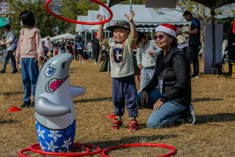 舞台表演同樣精彩,大小朋友跟著MOMO、YOYO家族歡樂唱跳,還有樣爸森友會、陸爸爸故事劇團、馬戲魔術師、帽子戲法及扯鈴表演;一連串節目讓小朋友看得目不轉睛、現場歡笑聲不斷,讓前來參與活動的親子家庭留下美好的回憶。