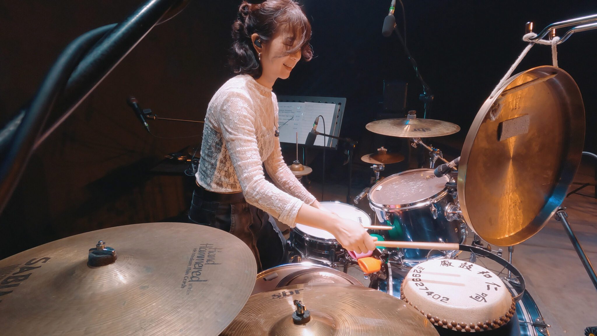 陳奕欣演奏鑼鼓時、鼓箸的持法不同於打爵士鼓、大拇指會是朝上的。圖片提供:公視