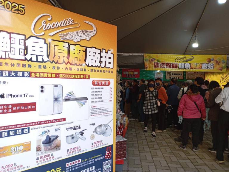 年終採購熱潮啟動!單一服飾品牌規模最大的「鱷魚原廠廠拍」12/24起火熱開場,主打全系列商品下殺1折起,並結合滿額贈、摸彩與韓國美食展等多重優惠,還加碼舉辦公益捐血活動,回饋社會。活動除在台中總公司開跑外,彰化埤頭工廠場次將於12/31開幕,推出備受矚目的「一元商品大搶購」,預料再掀一波搶購人潮。
