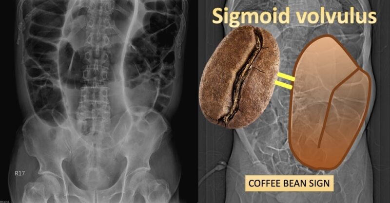 王心泰指出,典型的乙狀大腸扭轉在腹部X光上會呈現倒U型或咖啡豆狀腸氣影像。若未及時處理,腸道血流中斷會導致缺血、壞死、破裂,進而引發腹膜炎或敗血症,死亡率可高達 70%。乙狀大腸扭轉初期症狀常與便秘或腸阻塞相似,容易被忽略。