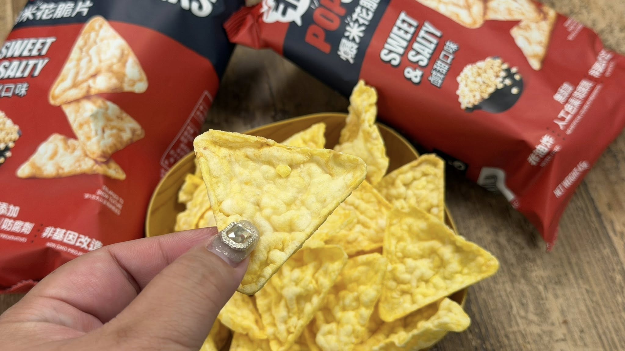除了個人獨享,PopCorners 爆米花脆片「成分簡單」與「鹹香不膩」的特色,在社團引發高度共鳴。更有網友分享:「甜甜鹹鹹的真的太涮嘴,而且跟一般的那種洋芋片一樣脆,有時候嘴饞又不想太罪惡,我會把雞胸肉沾蛋液、再裹上捏碎的餅乾丟進氣炸鍋,直接變成偽炸雞版本,意外超讚。」