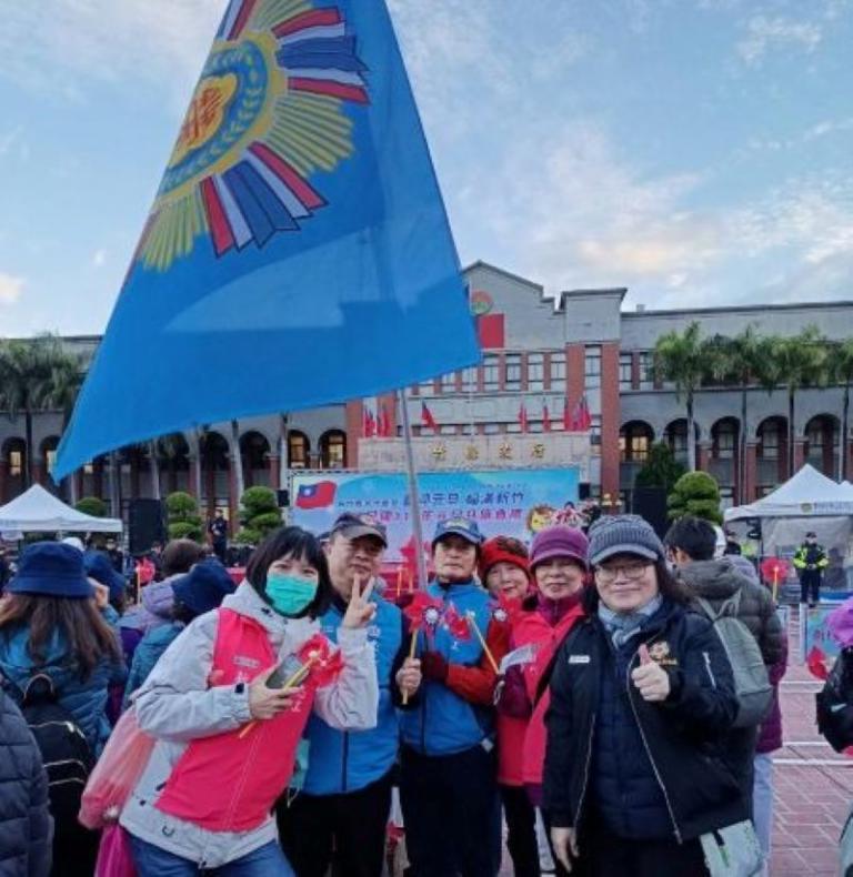 ▲新竹榮服處楊韻慧組長(右一)率領同仁及榮欣志工參加新竹縣政府府元旦升旗典禮。(圖/記者蔣彤雲攝)