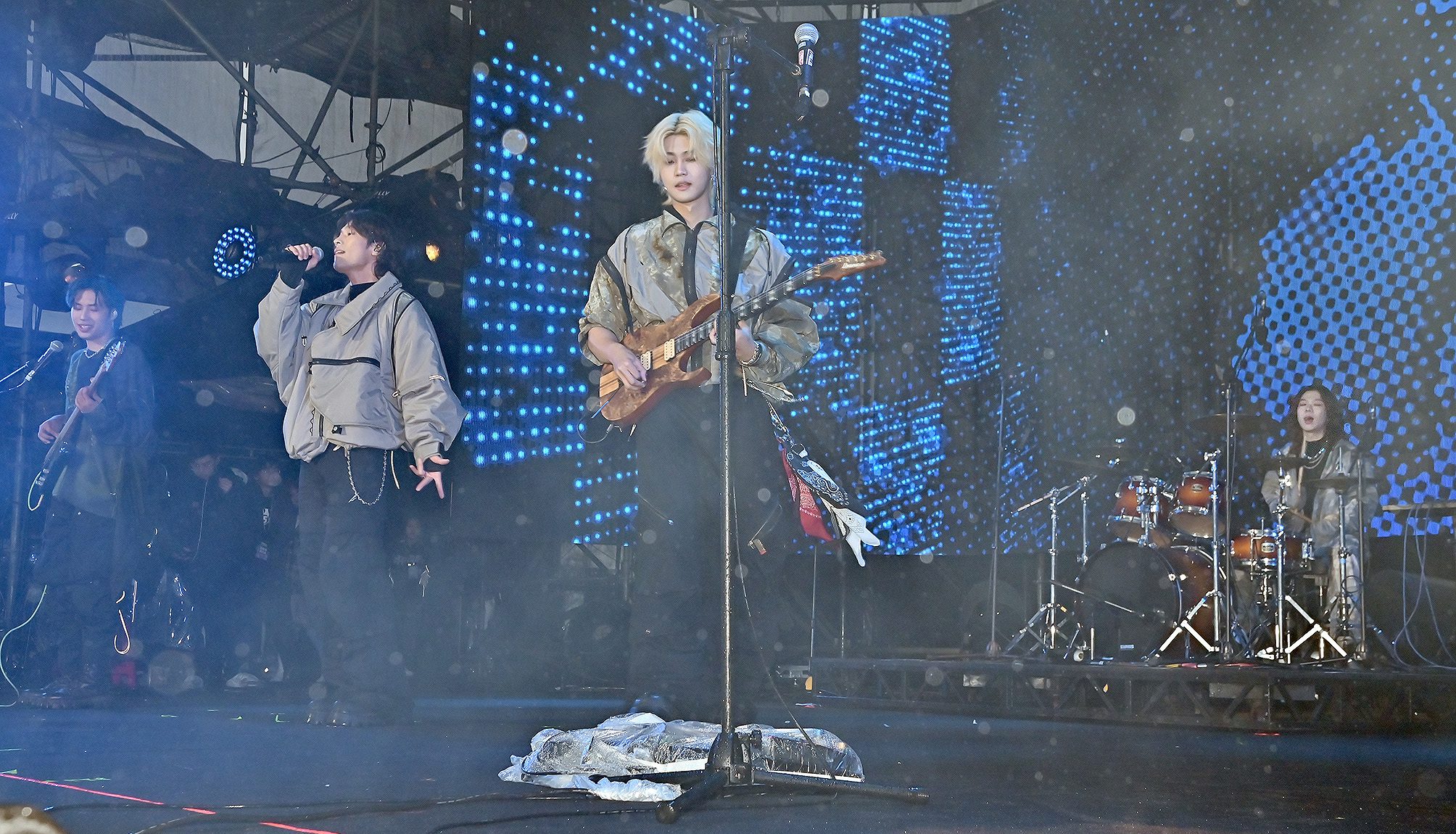 緊接著登場的賴晏駒 LAI,完全無視寒流來襲,在低溫中穿上簍空挖洞造型服裝,帶著舞者直接火力全開。一連帶來五首歌曲《BOY TOY》《魚水深情》《超級會》《乾我什麼事》《娘娘槍》,節奏一首比一首狠,舞台熱度瞬間飆升。台下觀眾跟著節拍尖叫、跳動,主持人也忍不住笑說「看完真的一點都不冷」,成功把八里現場氣氛再推上一個高點。