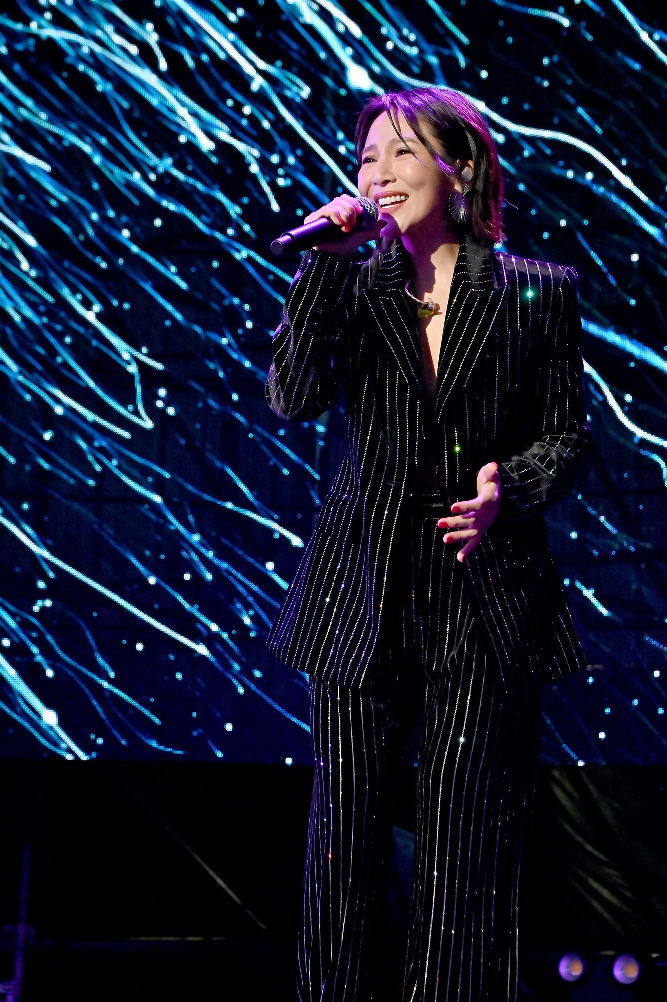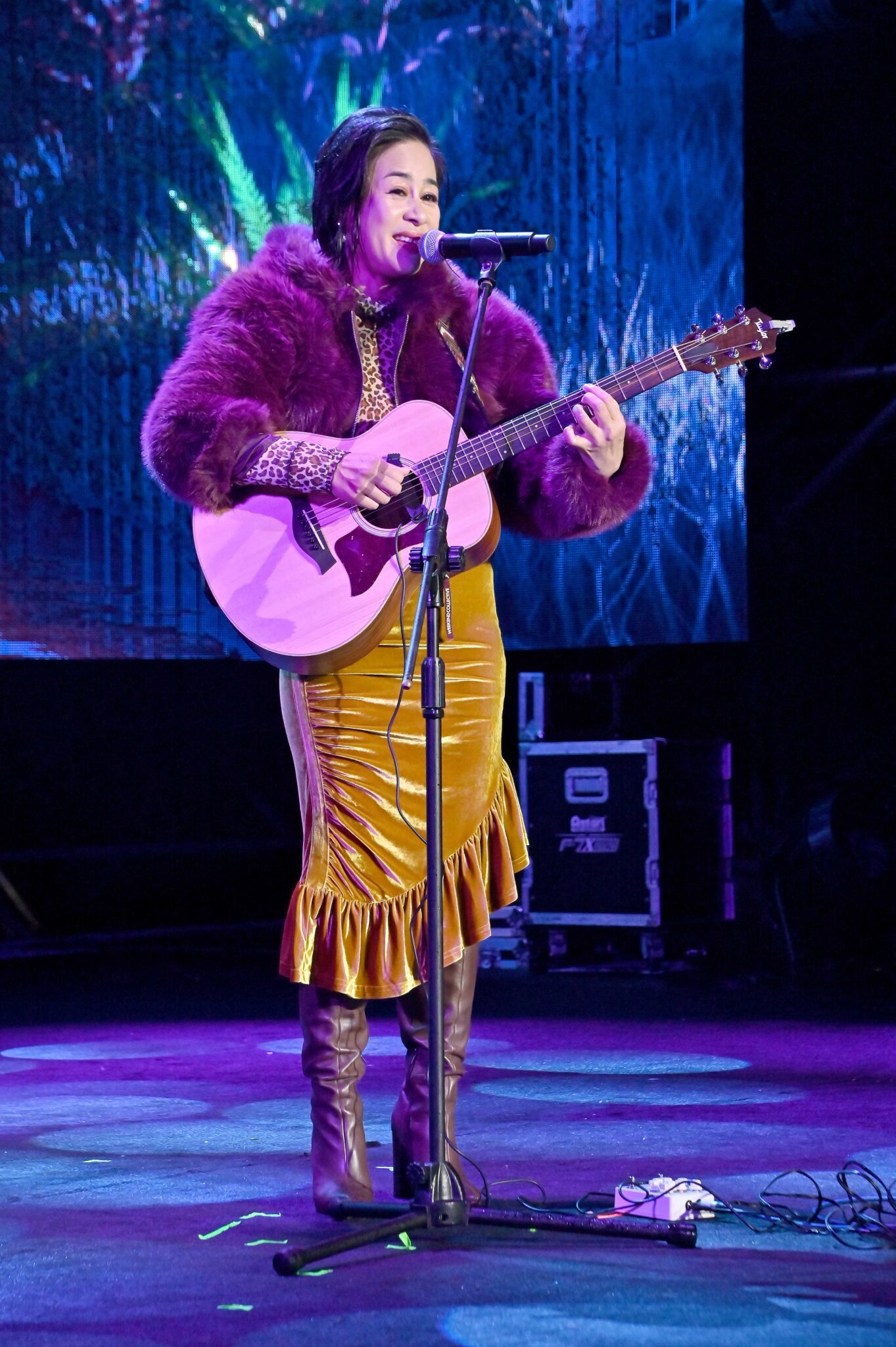 日本創作歌手樋口愛同樣氣勢十足,此次來台演出團隊近 10 人,一身喜氣紅色造型登台,格外吸睛。晚會開始前,線上平台就不斷出現網友詢問「愛醬幾點上台」,可見期待度之高。當她真正登場時,直播畫面瞬間被滿滿愛心符號洗版,氣氛熱烈到完全讓人忘記當晚天寒又飄雨的低溫。樋口愛在舞台上自彈自唱,情緒與音樂自然流動,現場觀眾靜靜聆聽,線上觀眾則用刷屏回應,形成另一種溫柔卻強烈的跨年氛圍。