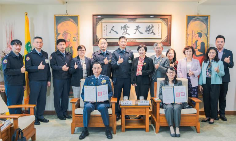 ▲文藻外語大學與空軍軍官學校主管與與會人員合影留念,象徵策略聯盟正式啟動。(圖/文藻外語大學提供)