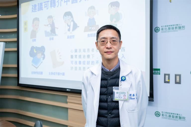 中醫部副主任陳運泰醫師說明,中醫在心衰竭治療中扮演的是改善治療效果的角色,重點在於整體調理與支持身體功能,例如提升體力、改善疲勞與呼吸困難,協助患者在長期治療中維持較佳生活狀態。近年也已有國際研究證實,在標準西醫治療基礎上加入中醫藥輔助,能降低心衰竭惡化住院或心血管死亡風險,且具良好安全性,顯示中西醫整合在心衰竭照護上有一定的價值。中醫藥治療強調整體觀與辨證論治,依不同體質與症候型態,提供個別化調理方案,作為現代醫療的重要輔助。多項研究也支持將八段錦或太極拳等傳統養生運動納入心衰竭病人的心肺訓練計畫中。這類溫和的養生運動有助改善呼吸困難、肌耐力與心理狀態,非常適合慢性心衰竭病人長期練習,是極佳的自我保養方式。