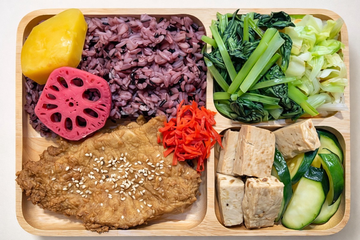 餐盒以高蛋白、低油鹽為原則,包含燜煮雞胸、滷雞腿、爐烤鱸魚等選擇,搭配紫米飯、蒸地瓜與時蔬,是常見的新莊低負擔餐盒首選。