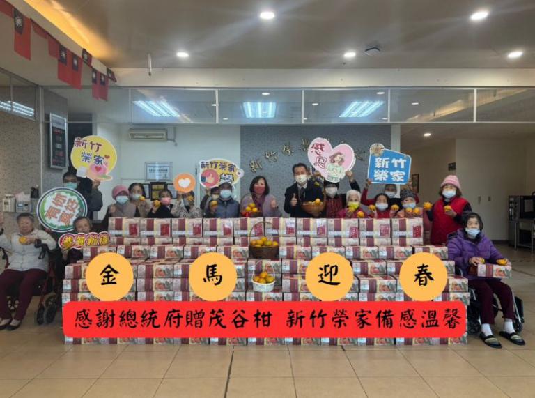 新春佳節前夕,總統府致贈新竹榮家象徵大吉大利的茂谷柑,榮家主任白恩惠隨即轉贈予住民長輩及全體員工