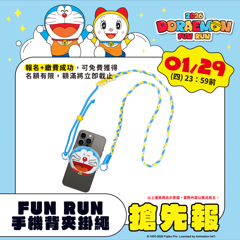 《2026 DORAEMON FUN RUN 哆啦A夢歡樂路跑》希望透過運動,傳遞開心、陪伴與向前邁進的力量,讓不同年齡的參加者,都能在同一條跑道上,跑出屬於自己的好心情。