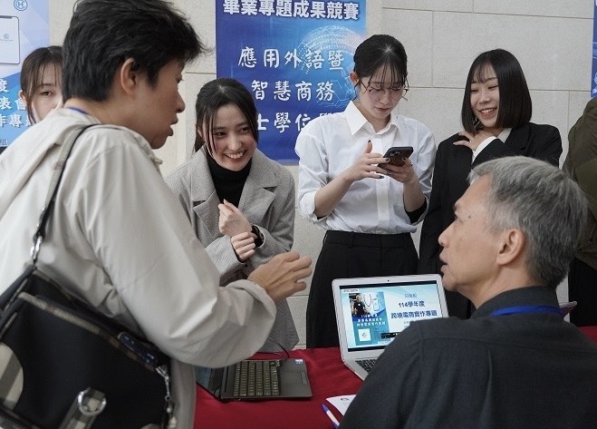 國際人文社會暨智慧商務學院院長簡曉花表示,畢業專題成果競賽不僅展現學生在學習過程中的努力與創意,更體現跨領域整合的能力。她感謝指導老師的付出,以及校外評審的專業支持,讓競賽更具深度與國際視野。