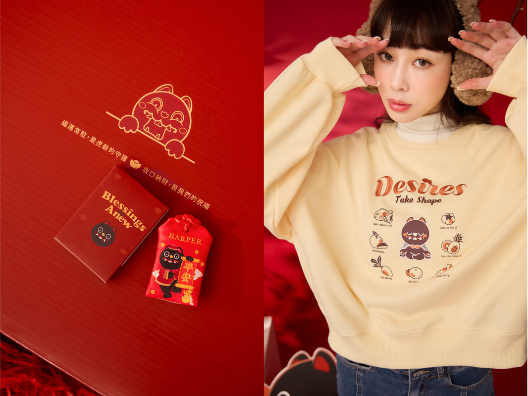 近幾年宮廟文化深受年輕人看見,除了成為守護與寄託的象徵之外,更是讓年輕族群親近信仰的文化底蘊!因此,HARPER 看準這股潮流,特別精心遴選出深受年輕世代喜愛、象徵財運與祝福的北港武德宮黑虎將軍,作為品牌首次聯名的合作對象,黑虎將軍不僅是許多信眾心中招財納福的守護神,更以勇猛、正義的形象深植人心,成為年輕族群的新寵。這次聯名系列,正是希望透過時尚的語言,讓更多人親近台灣文化,同時也為新的一年帶來滿滿的好運與祝福。