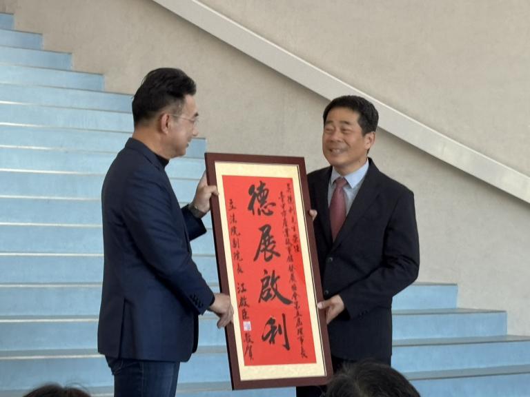 ▲立法院副院長江啟臣贈匾送上祝福。(圖/高婕)